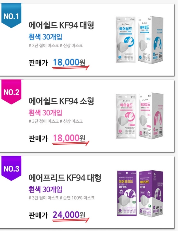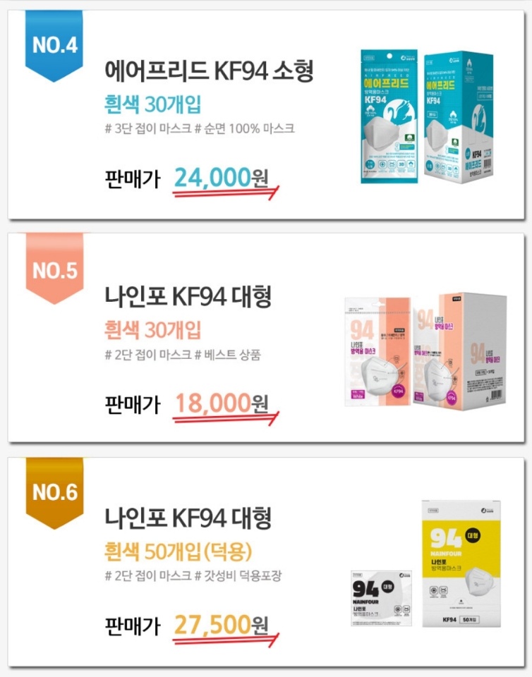 그리고 3월부터는 화요일, 목요일 주 2회 판매가 진행되며, No.5 나인포 kf94 대형 30개입 제품을 하루 500통씩 공급한다고 합니다.