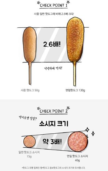 Check point 2 일반 핫도그 소시지에 비해 3배 크다