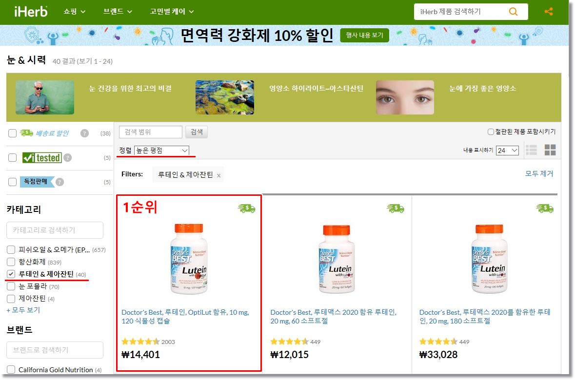 오늘 제가 포스팅하는 루테인 추천 상품 닥터스베스트 루테인 with OptiLut는 가성비 갑 루테인 영양제로 아이허브 루테인&지아잔틴 제품 중에서도 가장 높은 평점과 압도적인 구매율을 자랑합니다.