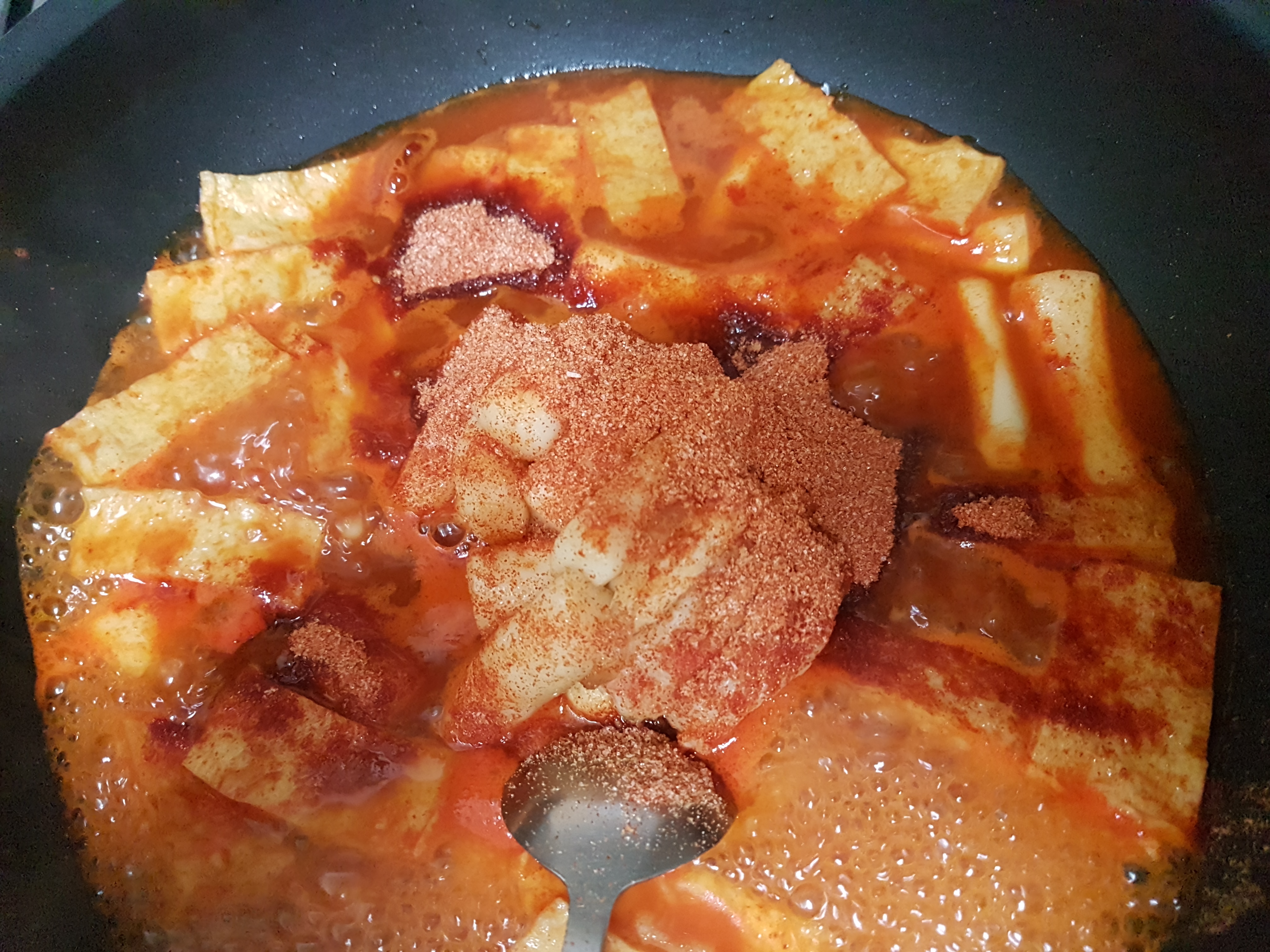 신경써서 절반씩 소스를 넣는다고 했는데, 매번 소스가 좀 과한 느낌이라 물을 좀 더 넣어 끓였어요.