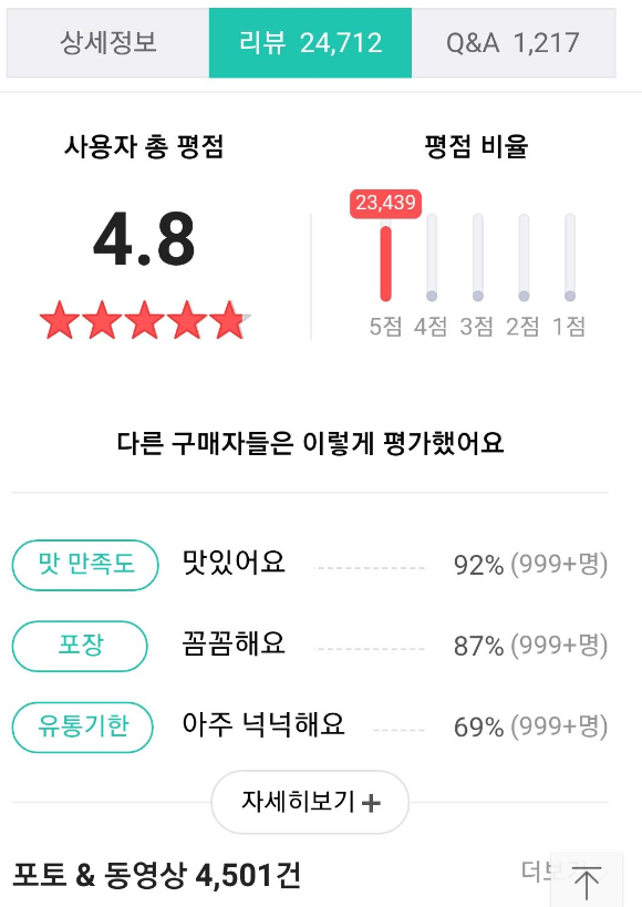 이건 지극히 개인적인 제 평가임으로 끝짱떡볶이 스마트스토어 평점도 첨부합니다.