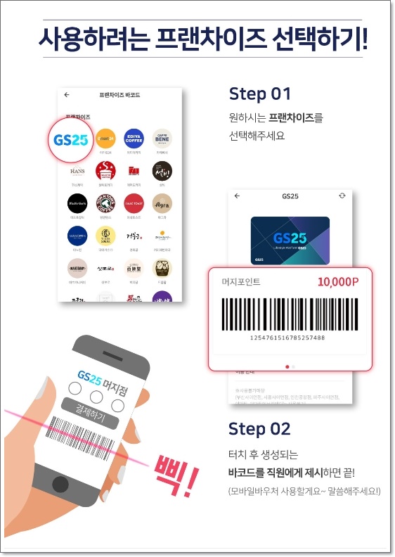 참고로 GS25와 이마트24 편의점에서 머지포인트로 주류 구매는 가능하나 담배 , 복권 , 교통카드 충전 , 상품권 , 전화카드 , 티켓 , 종량제봉투 등 구매 불가한 품목들이 있으니 구입 전 유의사항을 꼭 확인하시길 바랍니다.