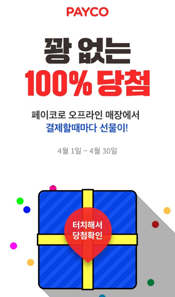 그간 페이코에서 오프라인 결제 활성화를 위한 다양한 이벤트를 진행해왔는데요. 4월달도 꽝 없는 100% 당첨 오프라인 결제 이벤트를 진행합니다.