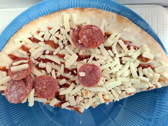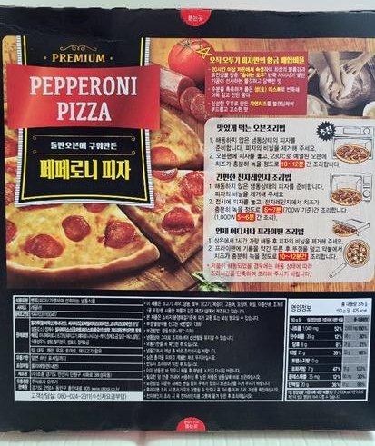 페페로니 피자인데 페페로니 햄 양은 조금 아쉽습니다. 전자레인지에 돌리기 전에 페퍼로니 햄을 골고루 배치시켜줄 필요가 있어요.
