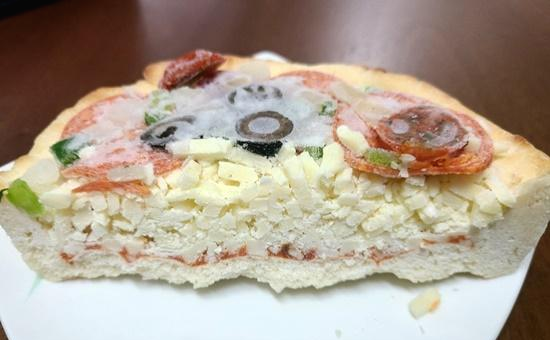 전자레인지에 돌린 피자를 먹는데 물이 줄줄 흐르더군요... 피자에서 물이 나오니 당연히 맛있게 먹을 수 없었지요. 구입한지 얼마 안된 피자인데, 사진 보시면 피자 위에 얼음이 가득 껴있습니다. 이게 물의 원인이 아닐까 싶네요.