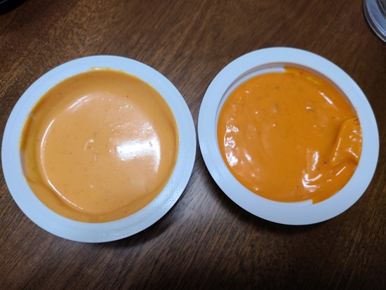 동봉된 소스도 두가지도 간단히 말씀드리면, 저는 개인적으로 부드럽고 고소한 맛의 마블링소스를 맛있게 먹었습니다.