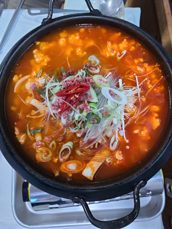 순두부 전골 정식의 메인 순두부 전골입니다. 초당 순두부가 맛있어서 일까요? 순두부 전골 역시 감탄하며 먹은 기억이 납니다.
