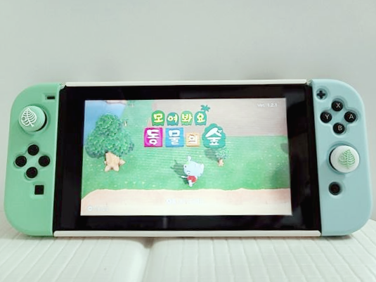 아래 사진처럼 케이스 착용 후에도 닌텐도 동물의 숲 에디션의 예쁨이 살아 있는 모습입니다. 아주 만족해요 :)