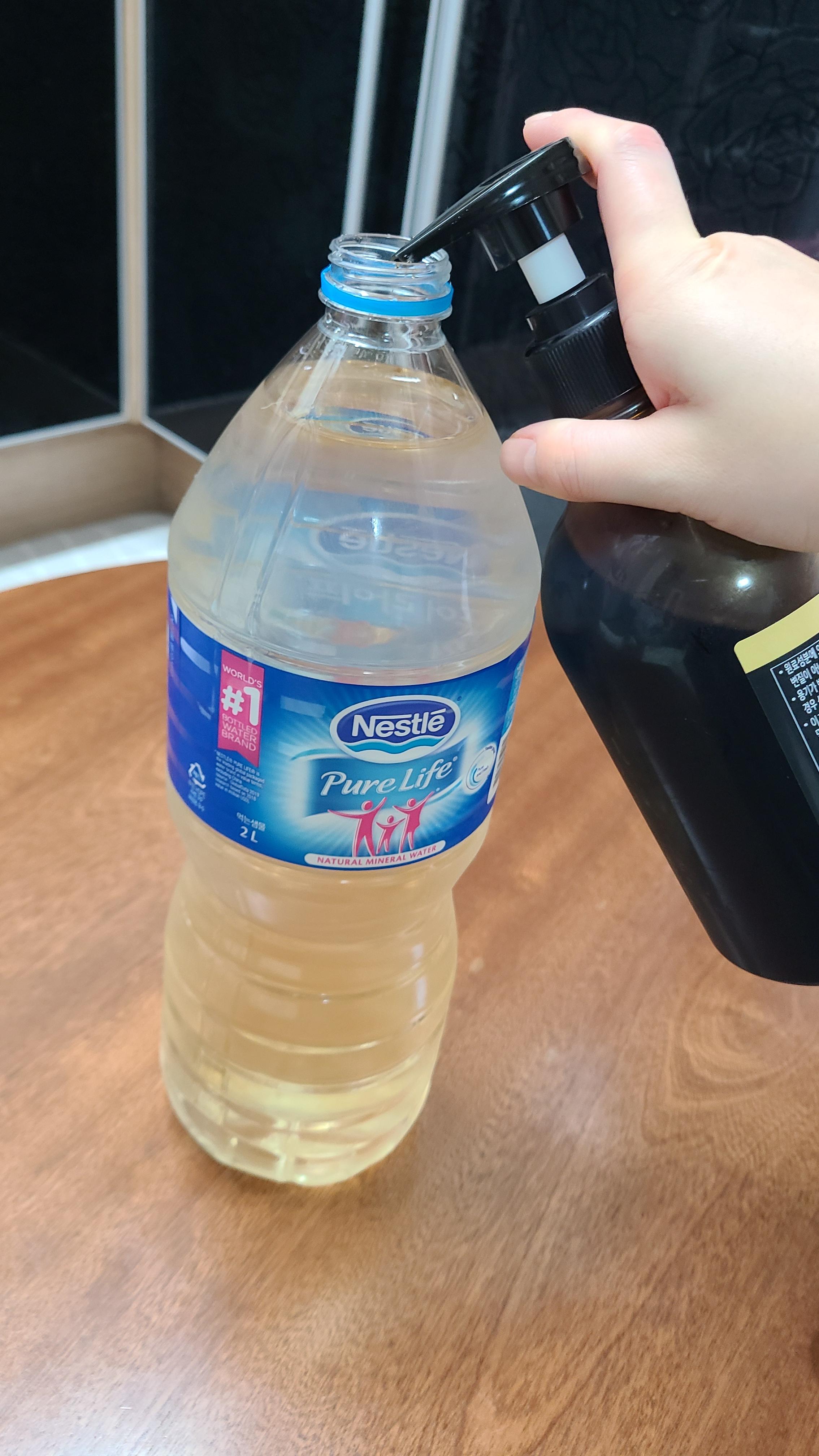 위 사진은 2L 생수에 엑기스 1~2 펌핑을 한 상태입니다. 이렇게 농도를 연하게 제조하면 헛개차보다는 보리차 같은 맛이 나서 평소 물을 잘 안 마시는 제가 부담 없이, 맛있게 마실 수 있더라고요. (참고로 헛개차는 물 대용으로 권장되는 음료는 아니고요. 자세한 건 아래 주의할 점에서 다시 말씀드리겠습니다)