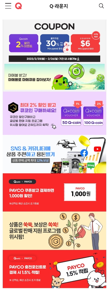 현재도 Qoo10 X PAYCO 프로모션을 하고 있으니 참고해 주세요. 큐텐에서 15,000원 이상 구매 시 1,000원 할인, PAYCO 포인트 결제 시 1.5% 추가 적립 가능한 쿠폰입니다!