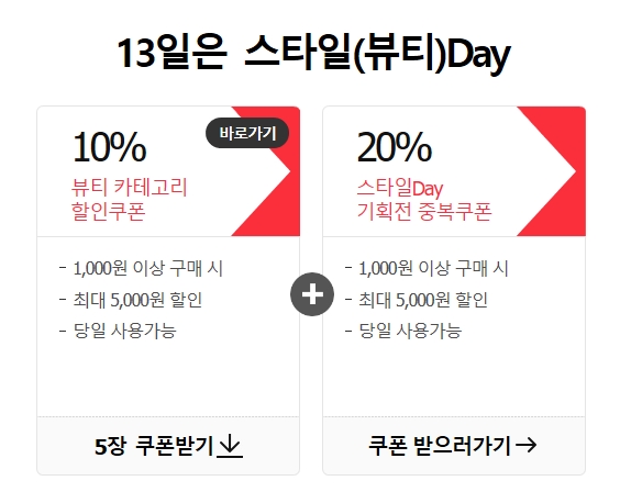 오늘은 11번가 스타일(뷰티) Day로 뷰티 카테고리 10% 할인쿠폰과 20% 중복 할인쿠폰, 그리고 전 고객 3만원 이상 구매 시 3,000원 추가 할인 가능한 장바구니 쿠폰까지 모두 적용하여 화장품을 꿀 구매할 수 있는 날입니다.
