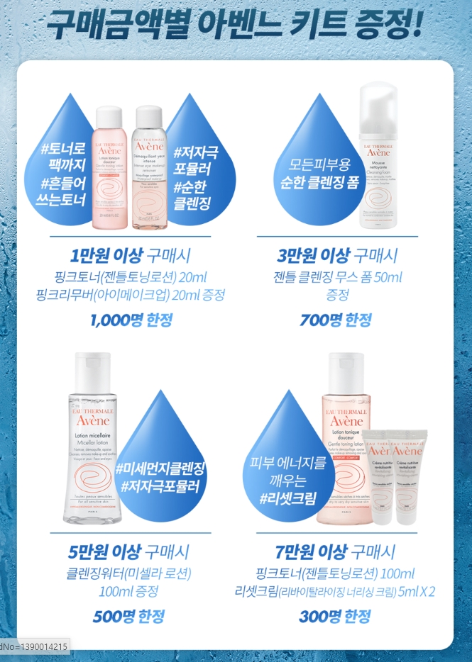 우선 첫번째는 아벤느 쇼킹딜입니다. 현재 구매금액별 아벤느 키트도 증정하고 있는데요. 한정 수량이니 참고해주시고, 무려 43개의 옵션으로 제품을 판매 중이라 아벤느 세트 제품과 인기 상품 오떼르말 아벤느 미스트 1+1 딜만 사진 찍어 왔습니다.