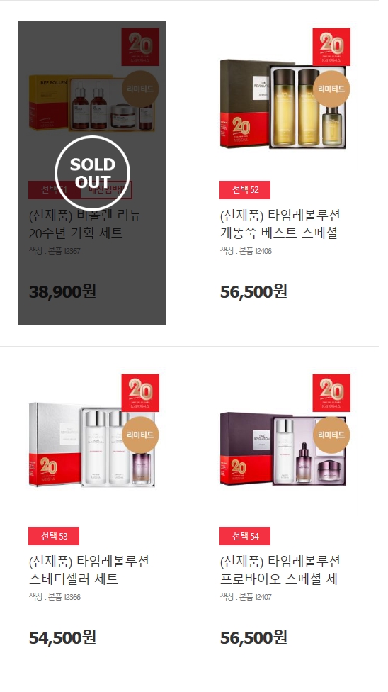 20주년 리미티드 상품 중 비폴렌 리뉴 기획세트는 아침 일찍부터 품절되었더라구요. 구성과 가격이 너무 좋았는데 아쉽습니다.