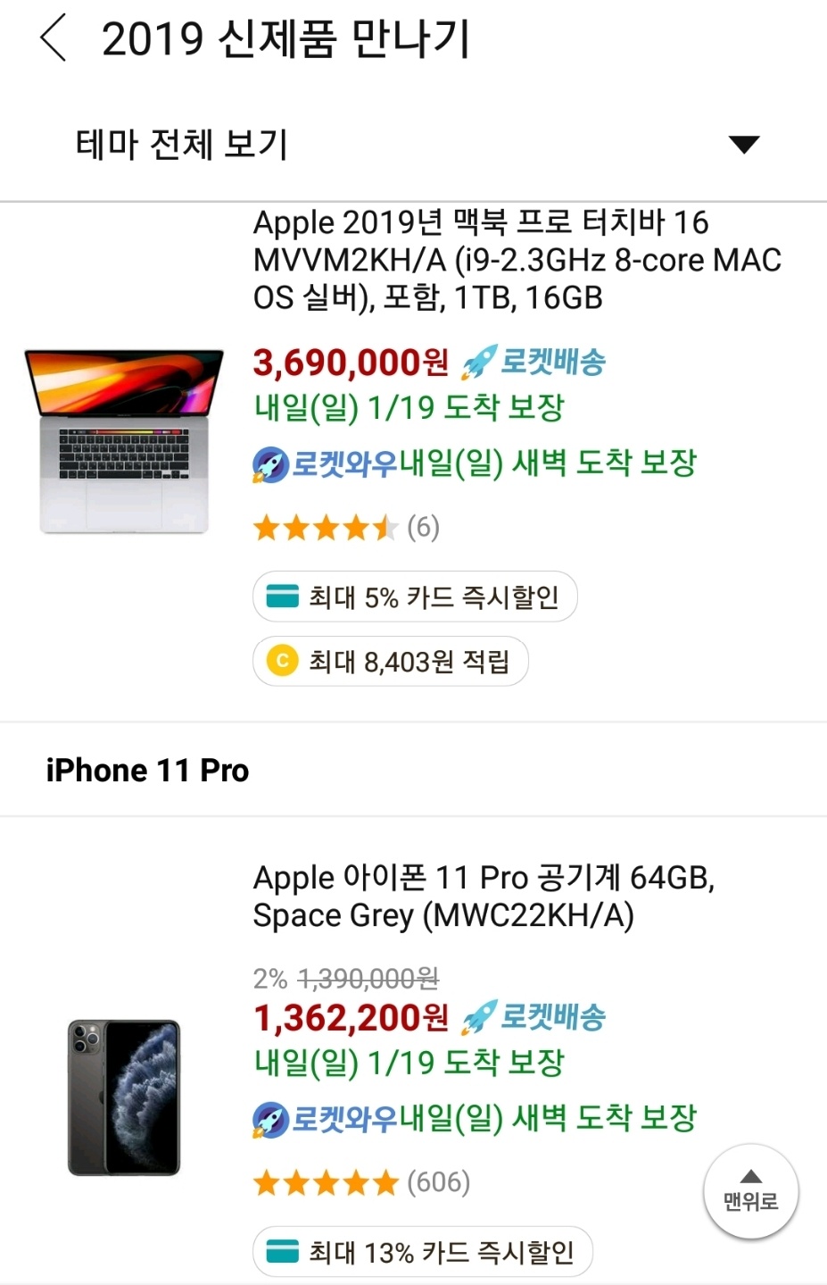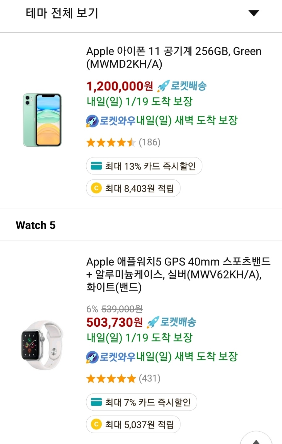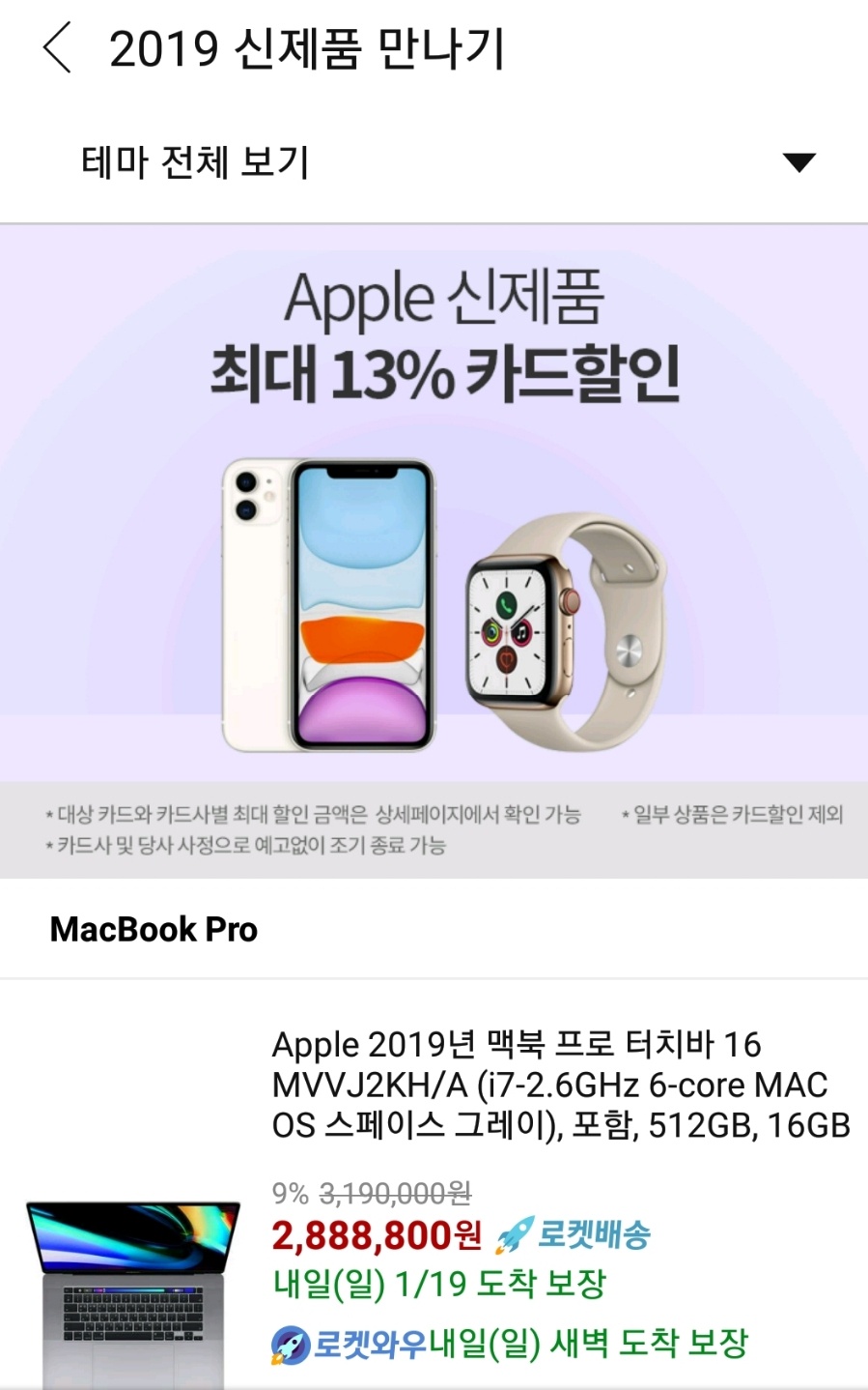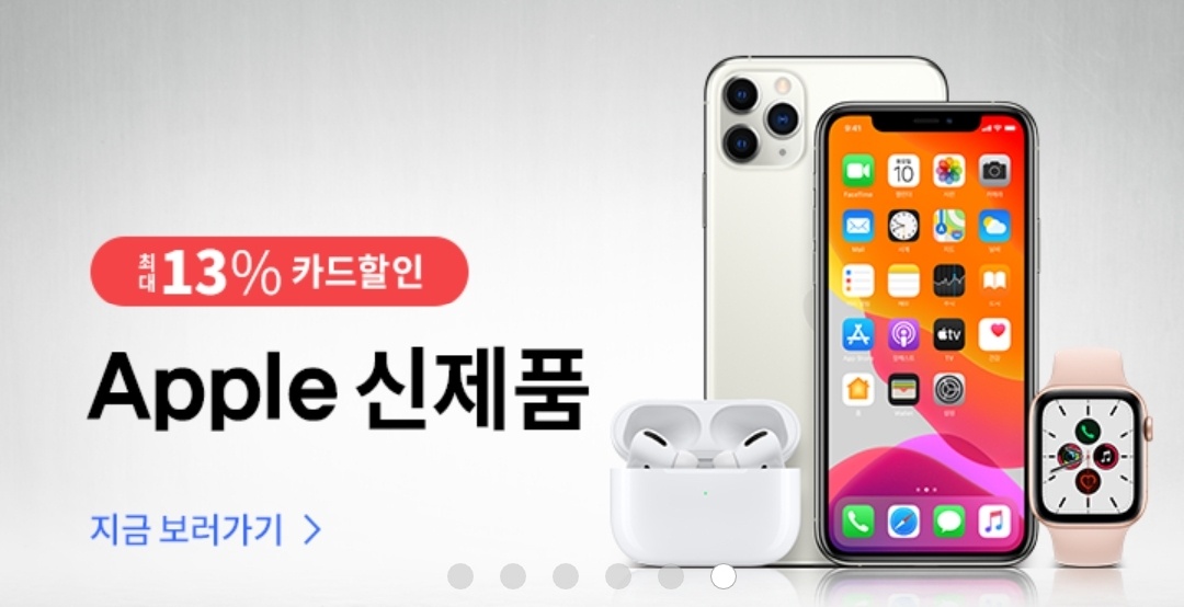 이 외에도 Apple 맥북 프로와 워치5 , 아이폰11 , 아이폰11 프로 등이 카드 즉시할인 구매가 가능하고 할인율은 5%부터 최대 13%까지 가능한걸로 확인됩니다.