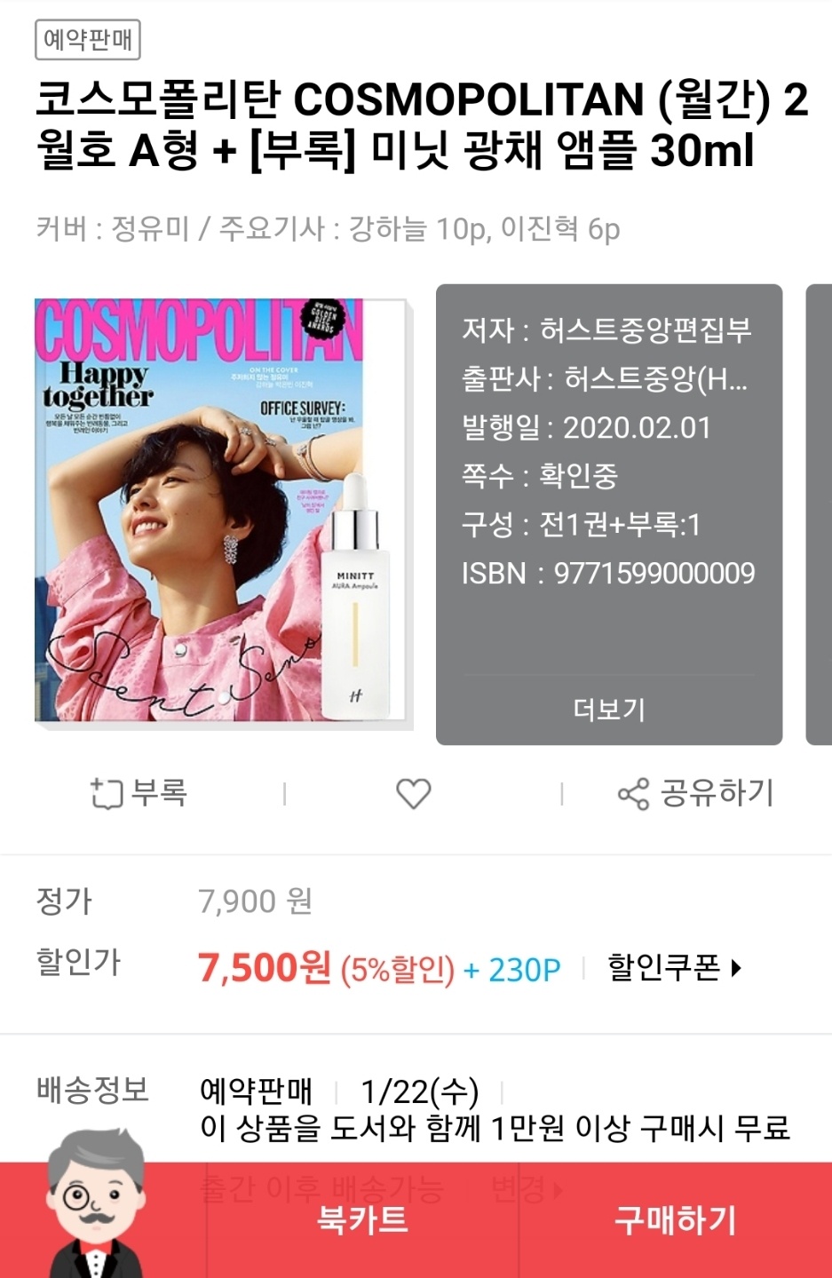 2020년 2월 최고 핫한 잡지(잡부) 는 싱글즈 + 유리아쥬 제모스 끄렘 400ml 입니다. 안타깝게도 현재 예약판매 상품은 모두 품절된걸로 확인되네요ㅠㅠㅠ 유리아쥬 제모스 끄렘은 직구로 구입해도 배송비 합치면 2만원이 넘는 가격인데, 6,900원에 구매할 수 있었으니 품절대란이 있을만 합니다.