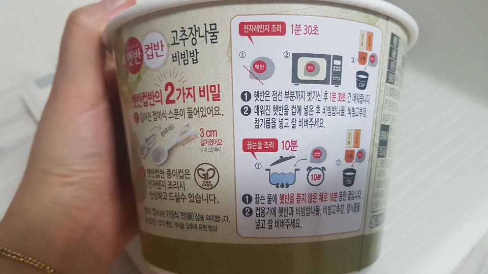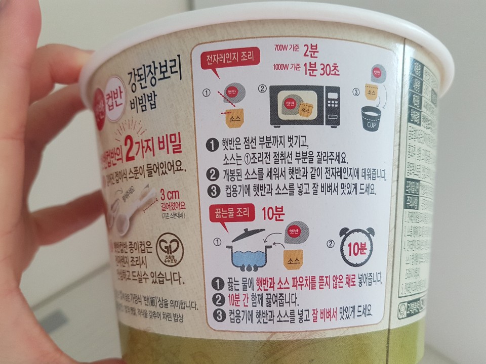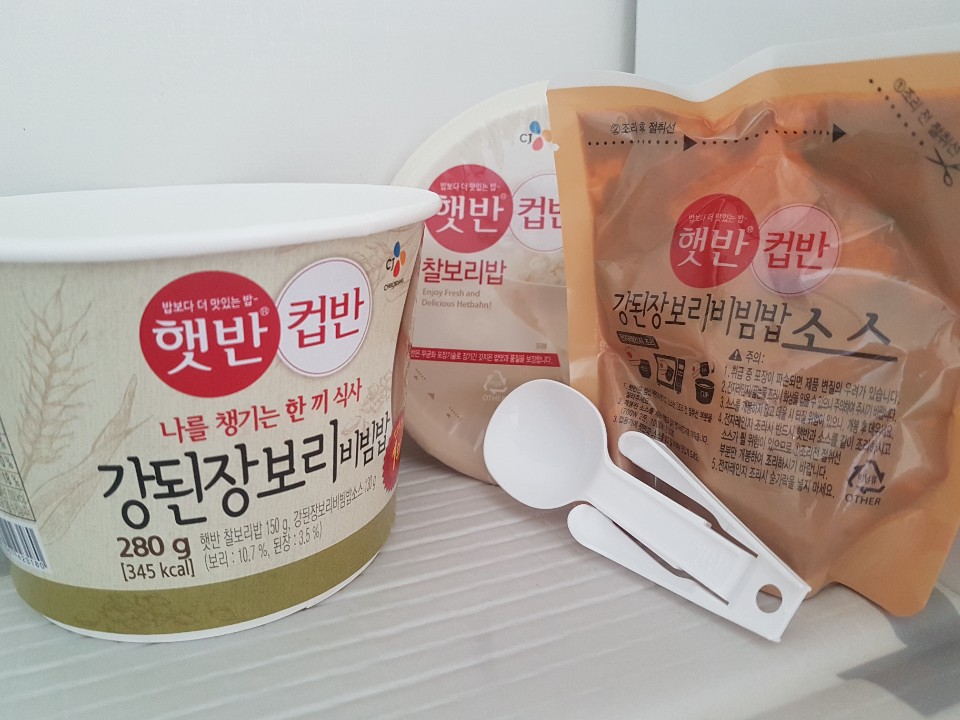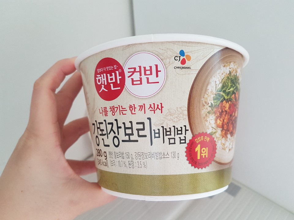 물론 일반적인 식사와 비교해 많이 부족할 수 있겠지만, 각기 다른 상황에서 모두가 삼시세끼 든든히 챙겨먹기는 힘들잖아요? 가끔씩 한끼 때우고 싶을 때! 상황 상 간편하게 식사를 해야 할 때! 그래도 나는 밥을 먹어야겠다 싶다면 CJ 컵밥 , 햇반 컵반 강된장 보리비빔밥 & 고추장 나물비빔밥 을 추천드립니다.